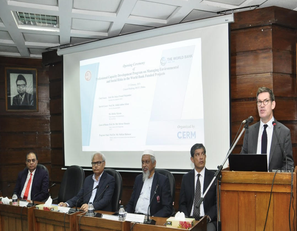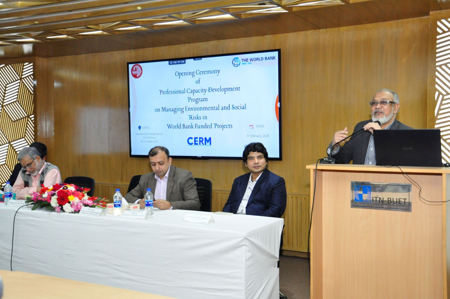 The Opening Ceremony of the Professional Capacity Development Program on Managing Environmental and Social Risks in World Bank Funded Projects was held on February 8, 2025, at the International Training Network (ITN), Bangladesh University of Engineering